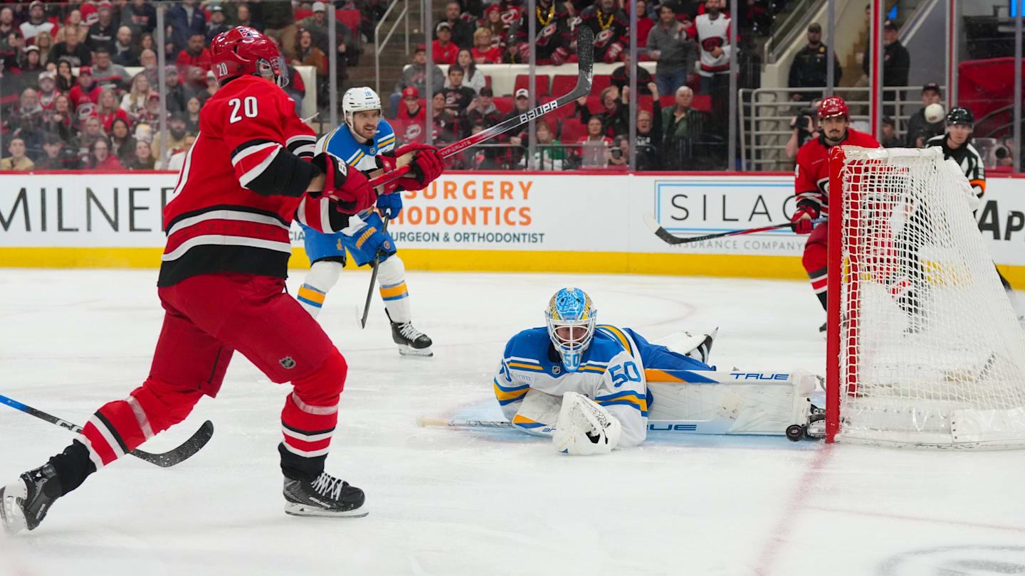 While they lost the game, it certainly wasn't for a lack of chances. Jordan Binnington was outstanding tonight. Sebastian Aho finished with a game-high seven shots, and he was victimized a few times. Logan Stankoven was too, hitting the post and having the pad flashed against him. It's the second time in a week and a half that a goalie has really stood on their head against the Canes.